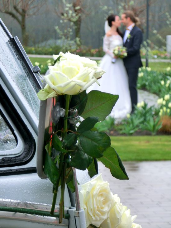 Hochzeitsschmuck mit echten Rosen in weiss: